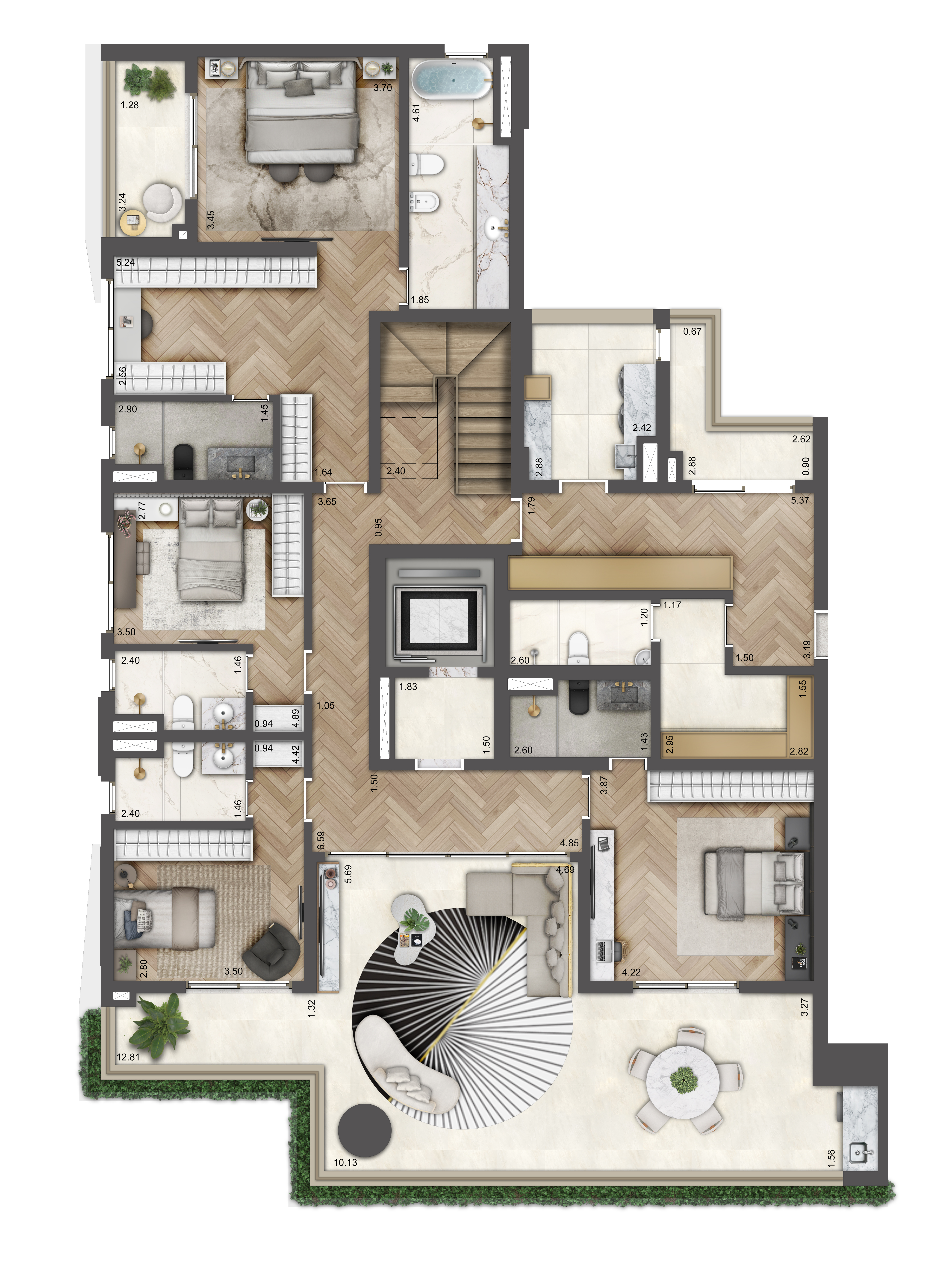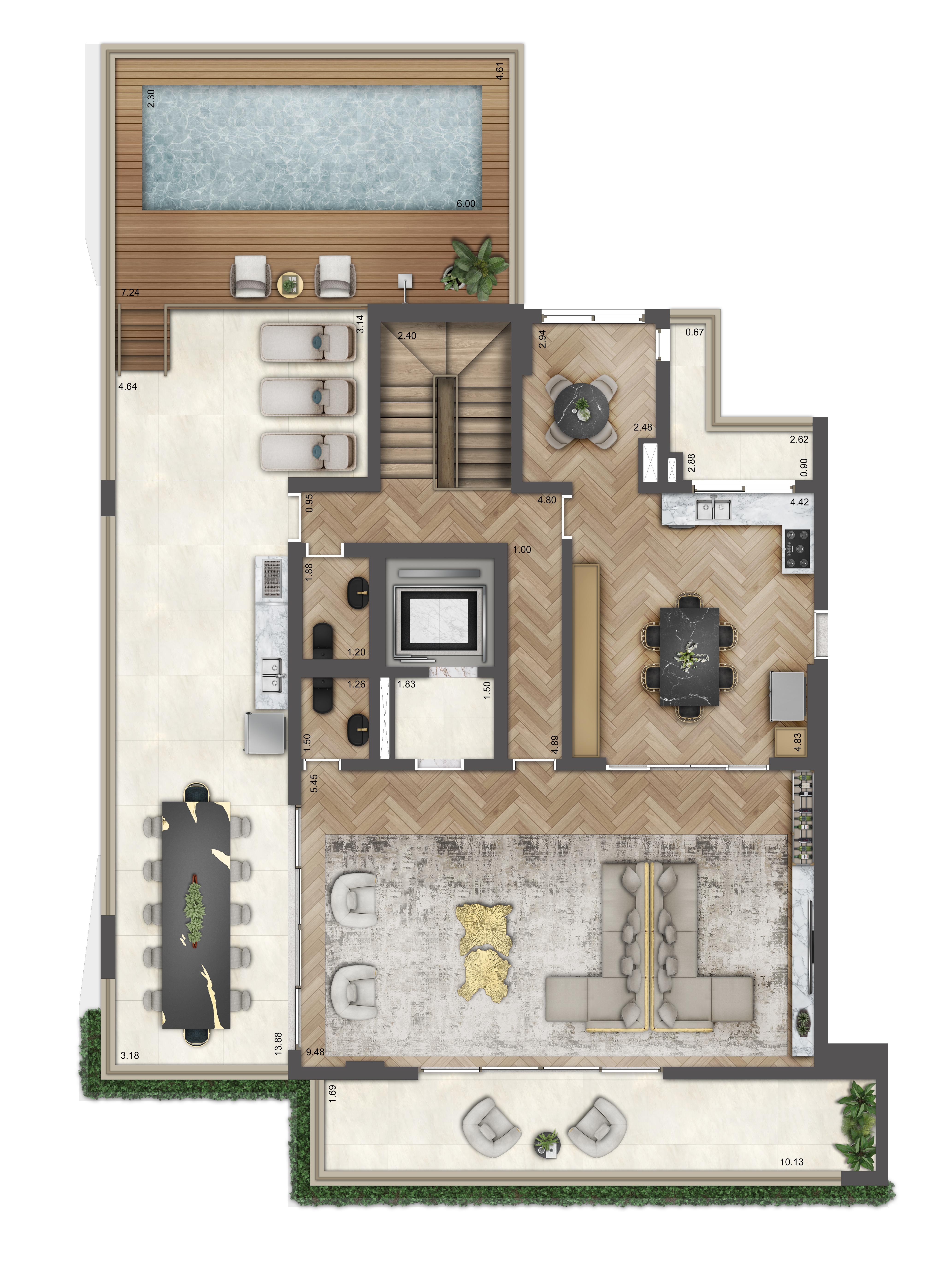 Projeto de assinatura internacional, posicionando o empreendimento na esfera do glamour internacional. As áreas comuns serão decoradas com mobiliário artesanal importado de Portugal. A torre será a mais alta da região, com apartamentos de plantas espetaculares, com excelentes layouts. A localização é ímpar, em frente a uma praça e ruas arborizadas, um oásis em São Paulo. Um condomínio surpreendente, que vai além da qualidade.